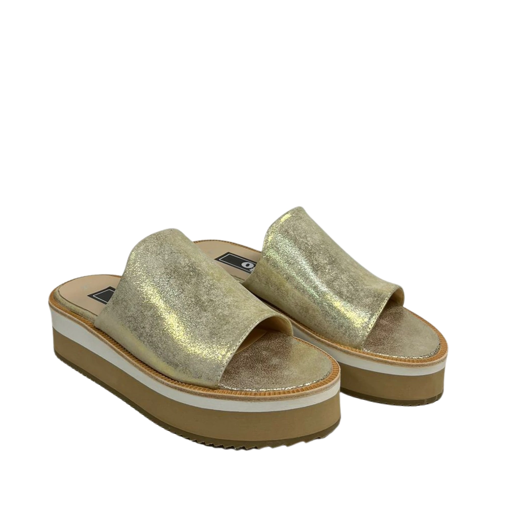 Este sueco de plataforma en color dorado es la elección perfecta para quienes buscan estilo y comodidad. Con un taco de 4 cm y una plataforma de 3 cm, ofrece un soporte ideal para tus pies. Su diseño de acceso directo facilita ponérselos rápidamente, convirtiéndolos en un accesorio versátil para cualquier ocasión.